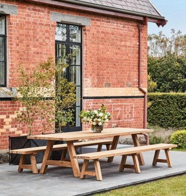 - Bankafmetingen: De banken zijn 300 cm lang en onderscheiden zich met een royale breedte van 42 cm en hebben zoals de tafel ook een dikte van 5 cm.